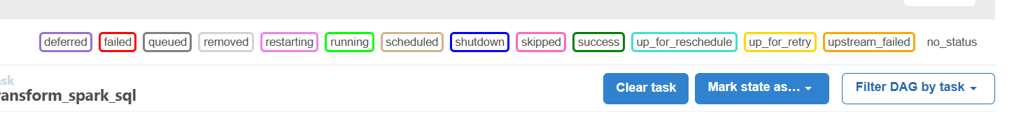 Виды состояний для таски | Нужны для наглядного отображения статуса выполняемой таски в момент выполнения и различаются по статусу и цвету. Каждый столбец в левой части интерфейса представляет собой отдельный запуск модели (RunID). Мигающие/горящие квадратики на графе показывают текущее состояние задач: |