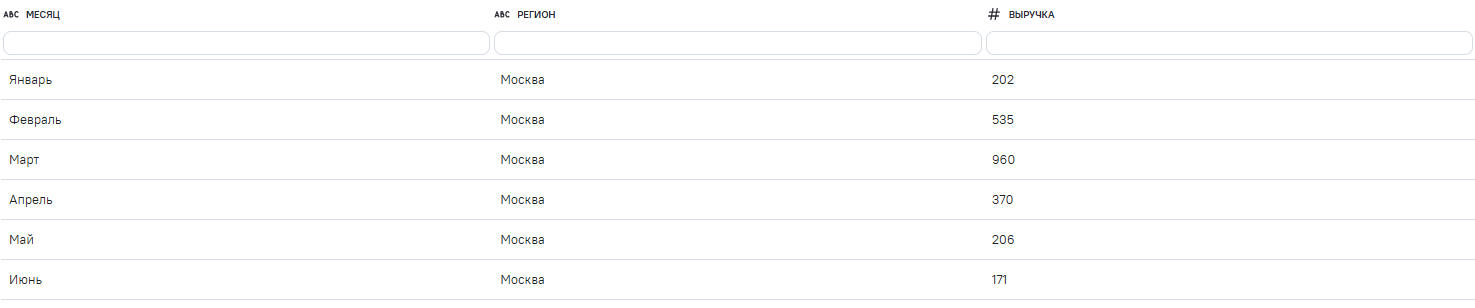 Во время изучения данной статьи создадим виджет - таблицу с динамикой региональной выручки по полугодиям для компании с данными по месяцам с января по сентябрь 2025 года.